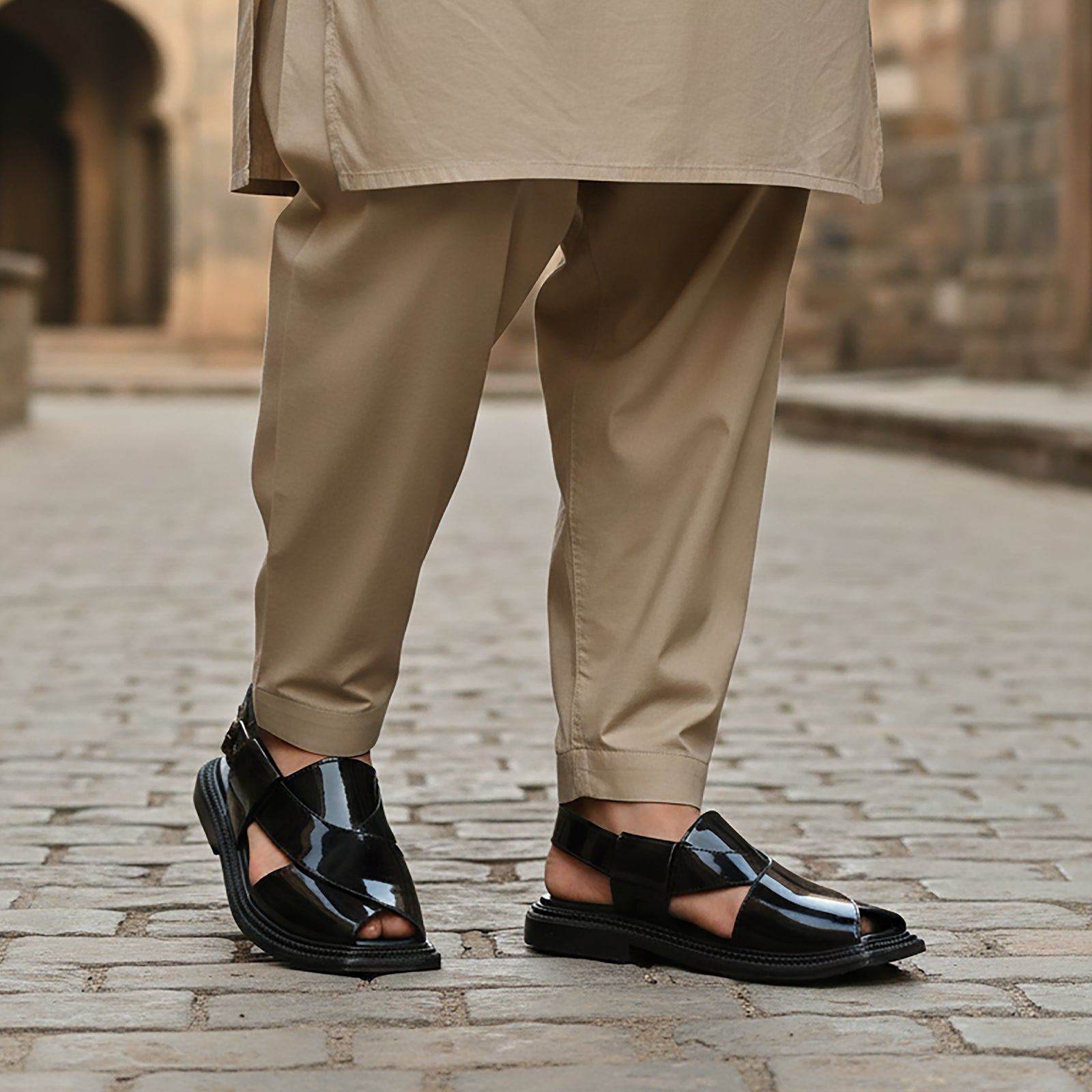 These Peshawari sandals for men offers a timeless design with a durable synthetic upper and a flexible PVC sole. Perfect for cultural events and casual outings, it ensures a secure fit and lasting comfort.
